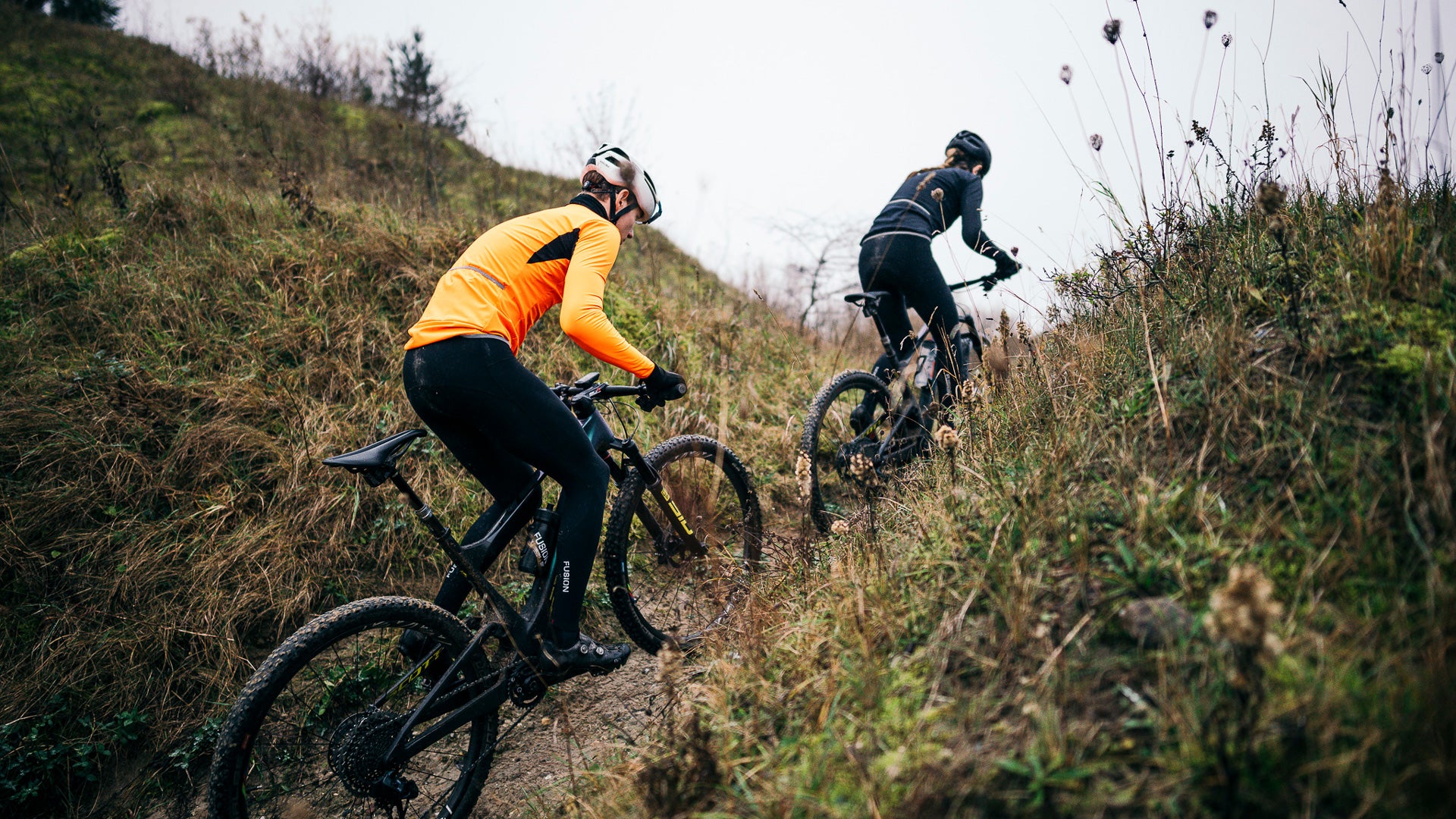 Stubborn climbs. A speedfest downhill. Flow on the flat. MTB requires reliable gear. And we're not talking about 34-42 or 32-34. Choose your right clothing setup for the cool track, the wild gravel roads, for the adventure.
